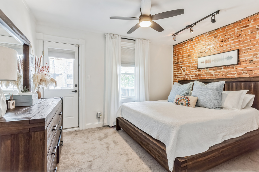 convenience. Updated throughout, this home features exposed brick, custom ceilings, a massive walk-in closet, and a luxury kitchen. A second-level deck offers extended living space right