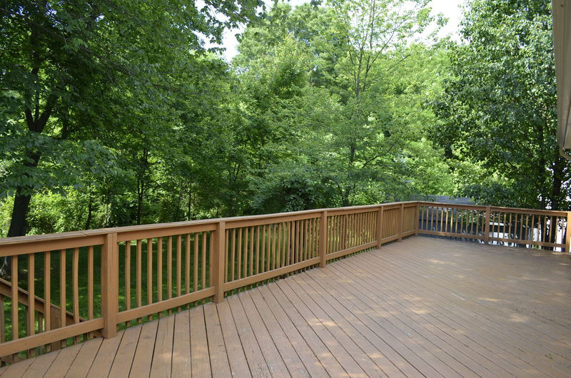 office, hardwood floors, gas heat and stove, and a huge deck that backs to woods. Also, the primary bedroom has an attached full bathroom and a walk-out to the deck. Located at the end of a